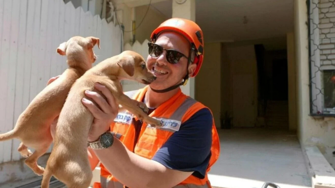 Two puppies rescued from a building destroyed in an Iranian missile strike in Bat Yam, June 17, 2025. Credit: Vadim Action.