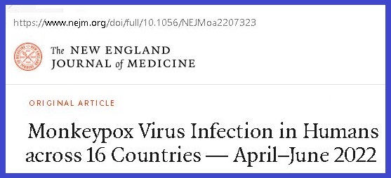 Results: We report 528 infections diagnosed between April 27 and June 24, 2022, at 43 sites in 16 countries. Overall, 98% of the persons with infection were gay or bisexual men, 75% were White, and 41% had human immunodeficiency virus infection; the median age was 38 years. Transmission was suspected to have occurred through sexual activity in 95% of the persons with infection. In this case series, 95% of the persons presented with a rash (with 64% having <10 lesions), 73% had anogenital lesions, and 41% had mucosal lesions (with 54 having a single genital lesion). Common systemic features preceding the rash included fever (62%), lethargy (41%), myalgia (31%), and headache (27%); lymphadenopathy was also common (reported in 56%). Concomitant sexually transmitted infections were reported in 109 of 377 persons (29%) who were tested. Among the 23 persons with a clear exposure history, the median incubation period was 7 days (range, 3 to 20). Monkeypox virus DNA was detected in 29 of the 32 persons in whom seminal fluid was analyzed. Antiviral treatment was given to 5% of the persons overall, and 70 (13%) were hospitalized; the reasons for hospitalization were pain management, mostly for severe anorectal pain (21 persons); soft-tissue superinfection (18); pharyngitis limiting oral intake (5); eye lesions (2); acute kidney injury (2); myocarditis (2); and infection-control purposes (13). No deaths were reported. — https://www.nejm.org/doi/full/10.1056/NEJMoa2207323