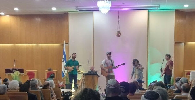 The photo is from a recent concert in Netanya by a popular band that very cleverly weaved together Israeli, Jewish and American folk music. Their name is appropriately, “The Solomon Brothers”.