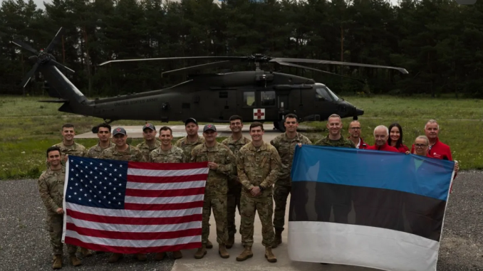 U.S. Army Soldiers with Task Force Knighthawk, 3rd Combat Aviation Brigade; and Soldiers with 1st Battalion, 506th Infantry Regiment “Red Currahee,” 1st Brigade Combat Team, 101st Airborne Division (Air Assault), both supporting 4th Infantry Division; and North Estonia Medical Centre staff (US Army photo)