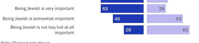 A whole lot of the respondents answered that being Jewish is not at all important or very important which would suggest that these people don’t really see themselves as Jewish.