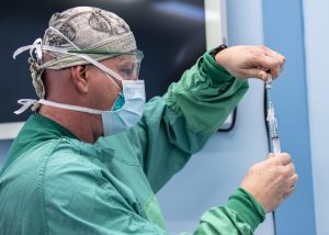 200418-N-PH222-1830 LOS ANGELES (April 18, 2020) Lt. Cmdr. Keith Freeman, from Canton Ga., prepares a syringe prior to a surgery(Photo by Navy Medicine from Washington, DC, USA – 200418-N-PH222-1830, Public Domain)