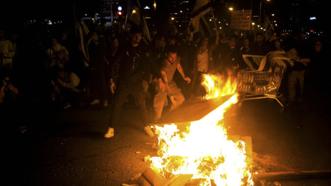 Anti-government protesters on March 27, 2023 in Tel Aviv, Israel. (Photo by Amir Levy/Getty Images)